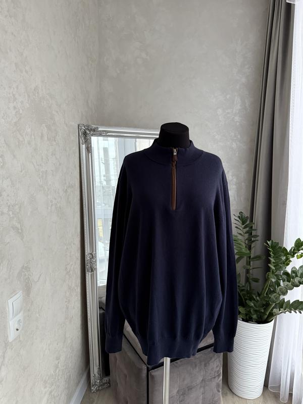 Чоловічий светр шийка на замочку❤️ Синій колір з красивим коричневим замшевим замочком 57% котон, 25% вовна, 18% нейлон Стан ідеальний Рр Л-Хл Заміри: Плечі піб 46 см Під пахвами піб 60 см Рукав від плеча 65 см Довжина 72 см