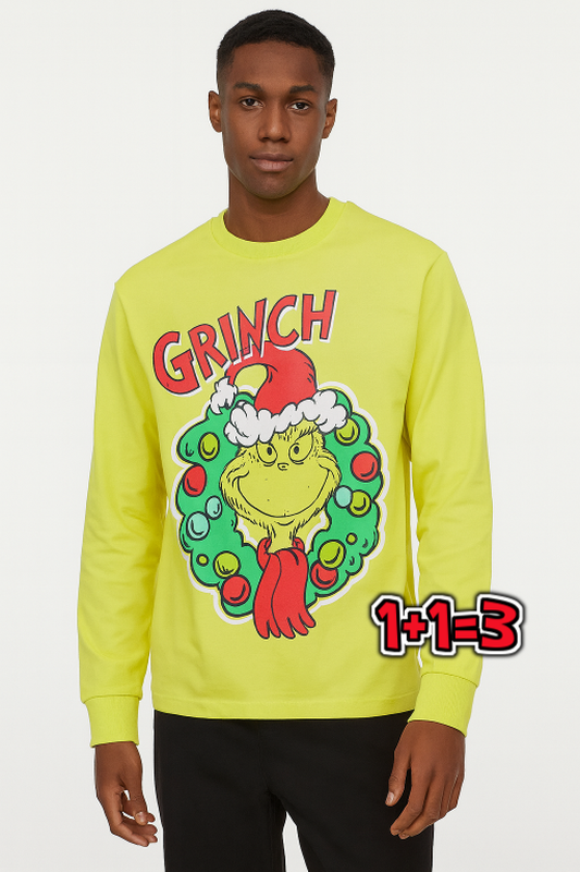 🎁1+1=3 салатовый яркий мужской новогодний свитер лонгслив the grinch, размер 46 - 48