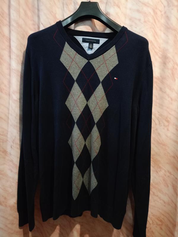 Стильний чоловічий джемпер tommy hilfiger 100% бавовна візерунок аргайл (argyle), xl