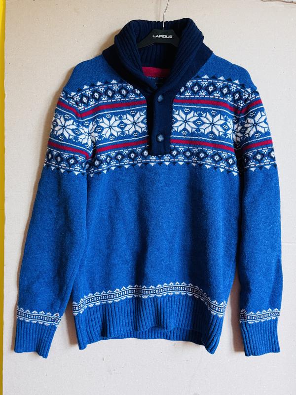 Чоловічий шерстяний светр tommy halfiger m синій з узором 100% шерсть норвежський зимовий...