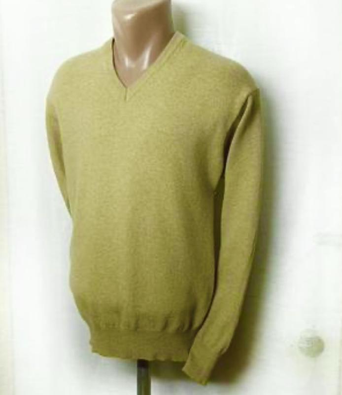 Шерстяний светр пуловер чоловічий з v образним вирізом натуральний люкс вовна оливка