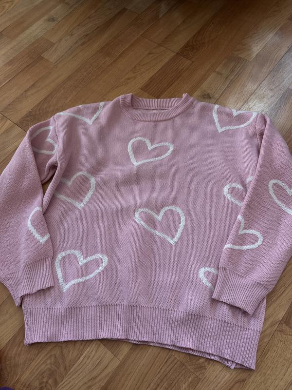 милий рожевий світер в сердечко, комфортний то тіла, дрібна вʼязка, гарно гріє, подовжений повністю закриває спину, розмір XS-S, якщо маєте питання пишіть в особисті повідомлення!!!