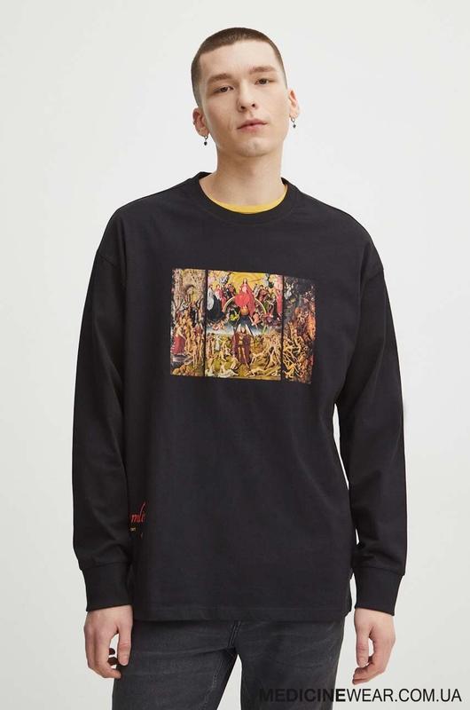 Бавовняний чорно синій светр з гарною вишитою вивязкою