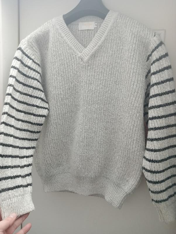 Теплый вязаный с невысокой шеей молодежный свитер. Обхват по плечах 100-110 см. Обхват по грудях 90-100 см. Длина рукава 50 см. Длина по спине 60 см.. Высота шеи 3 см.
