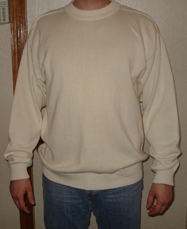 Светр West Point Розмір - 52/L Склад: 100% бавовна. Колір - вершковий. Сезон - весна, осінь. Светр в хорошому стані. ЗАМІРИ: Довжина рукава від ворота до краю манжета - 81 см Довжина виробу від плеча до краю нижньої гумки - 73 см Ширина виробу (від пахви до пахви) - 63 см Ширина рукава у верхній частині - 28 см