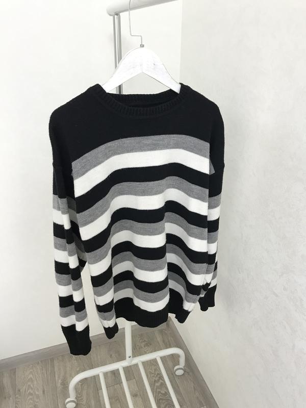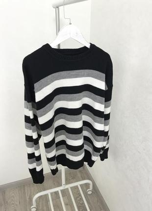Відмінної якості светр з красивим переходом чорно-білих смуг, 52 розмір. Звертайтеся!