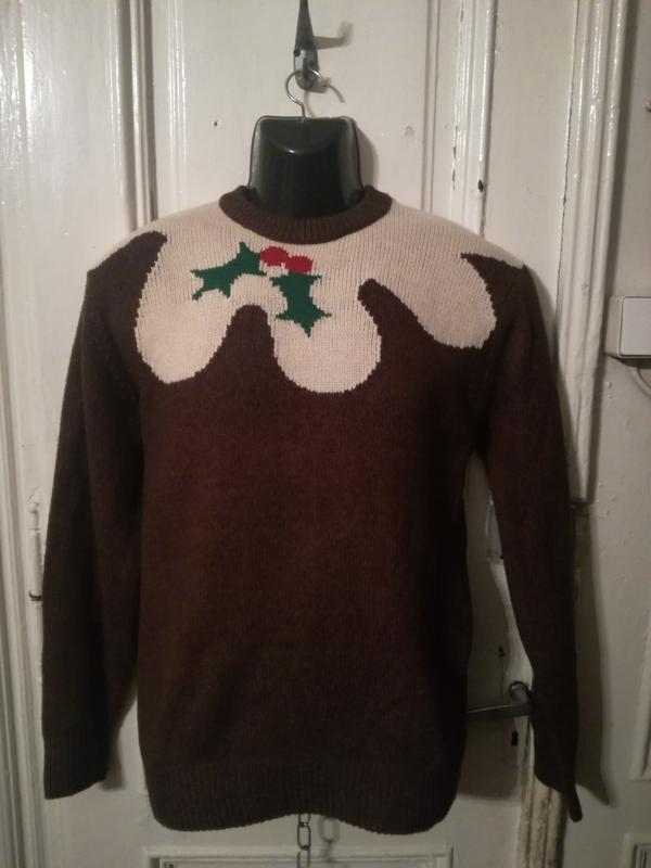 Светр новорічний коричневого кольору акрил ПОГ 62 см довжина 70 см довжина рукава 67 см Доставка по всій Україні Розмір М