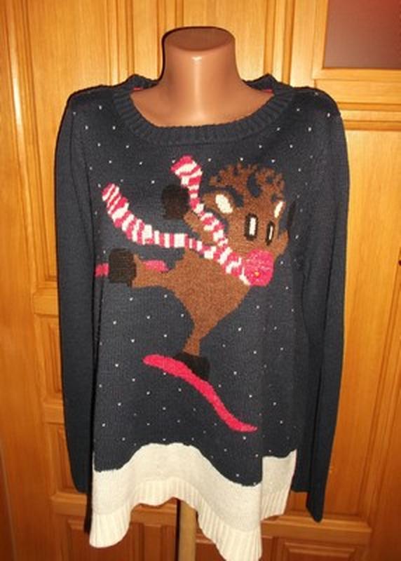 Стильний новорічний светрик з миготливим носиком у оленя. Заміри ПОГ 54-60, довжина 62, плече 9. рукав 67. Дивіться фото. Речі за ціною розпродажів. При покупці декількох речей знижка. Приємного перегляду.