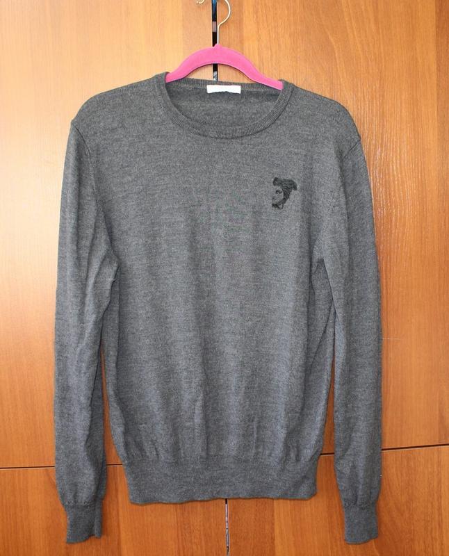 Чоловічий светр VERSACE (оригінал). Колір темно-сірий. Склад: 100% вовна. На рукавах і внизу еластичні манжети. Стан ідеальний, без слідів шкарпетки. Одягалась 2-3 рази (коротка). Розмір XL, більше підійде на L. Заміри: довжина 65 см плечі 43 см ширина під пахвами 50 см довжина від пахви вниз 40 см довжина рукава від плеча 66 см, від пахви 49.5 см