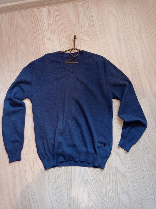 Класний теплий вовняний светр від бренду Tailor Store з V-подібним вирізом синє-сизого кольору (колір «сливи»), розмір буде на «М», може підійти і на «S» (див. нижче наведені виміри). Светр в чудовому стані,без дефектів і без слідів шкарпетки (див. фото). Заміри: 1.Ширина в плечах – 46 см. 2. Ширина по спині ( від пахви до пахви )- 51 см. 3. Довжина рукава по зовнішньому шву - 65 см. 4. Довжина рукава по внутр.шву - 48 см. 5.Загальна довжина кофти - 66 см.