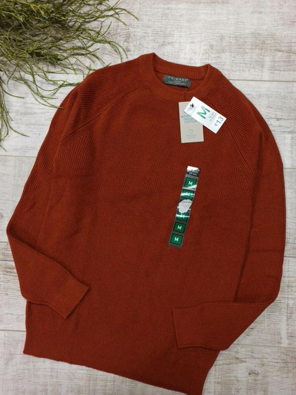 Светр Primark ❤️ 83% organic cotton, 17% polyamide На фото вийшов яскравіше, наживо більш спокійний, цегляний колір! 🏷️ довжина 70см 🏷️ пог 48см (тягнеться) 🏷️ по низу 40см 🏷️ рукав від горловини 74,5 см 🏷️ рукав від пахви 51см