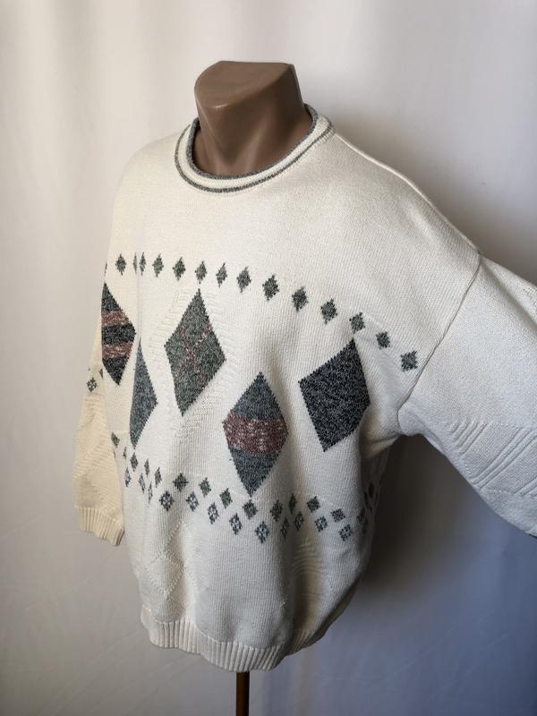 78%бавовна, 23%акрил, товстий, м'який светр. Дев'яності, внутрішня етикетка в правому бічному шві. Довжина 67 Ширина 65-63-51 (груди-талія низ) Плечі 60, рукав 57, рукав від горловини Вага 80 790 р.