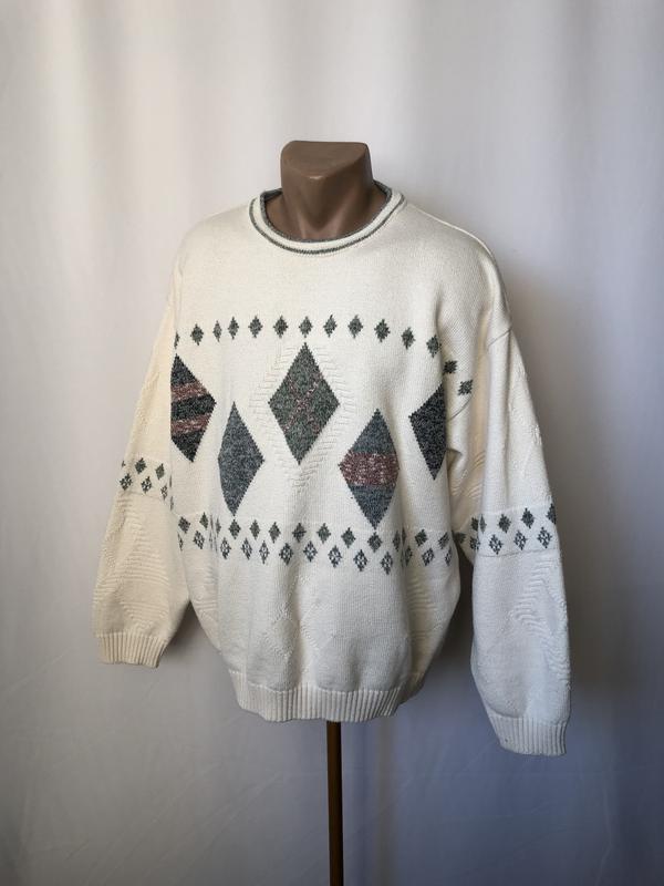 Вінтаж білий светр з ромбами ретро 80е 90е marks & spencer хлопок акрил из девяностых
