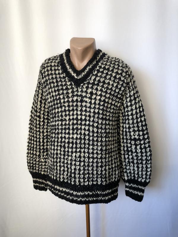 Чорно-білий рябий светр шерсть вінтаж ретро кофта джемпер оверсайз вендей чорна біла