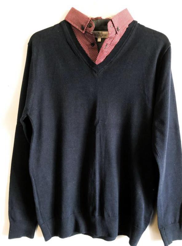 🌹Ласкаво просимо в мою шафу!!!🌹І одразу дякую вам за те, що вирішили подивитися мої оголошення!!!🤗 Светр-сорочка Next Оригінальний дизайн! якість. Темно синій колір. Довжина рукава 62 см Плечі 41 см Довжина 68 см 80% котон 👖👚👔👕🩱Обновки майже кожен день, тому підписуйтесь ☝️☝️☝️щоб бути в курсі новинок🌹