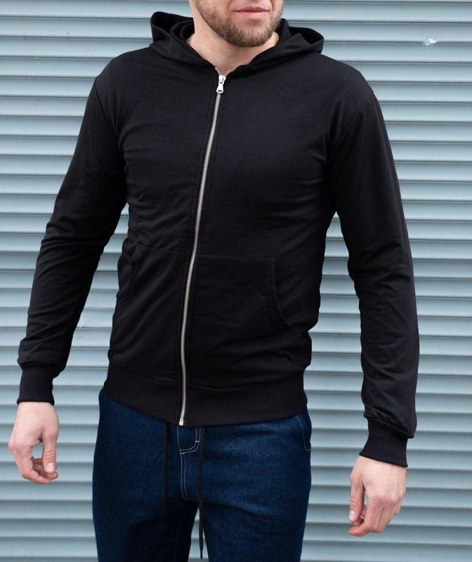 Кофта чоловіча на блискавці, чорна, з капюшоном