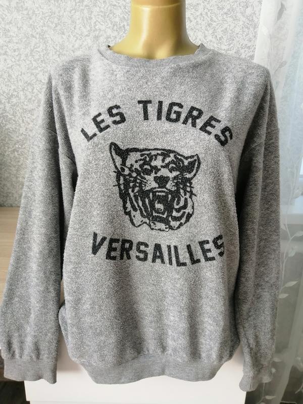Бомбезний сірий з чорним написом світшот, м'якенький гарно тягнеться. Унісекс. Розмір 38.Довжина - 67,ПОГ-56см.ДР-52,ШР-21см.