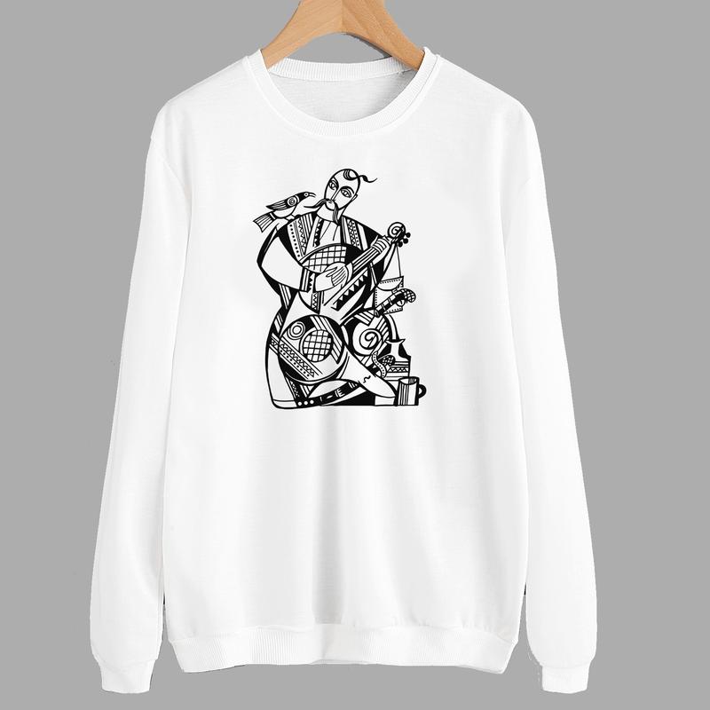 Світшот білий з патріотичним принтом "козак мамай. козак із музичними інструментами" push...