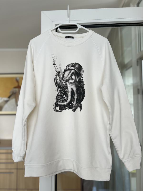 Світшот чоловічий білого кольору з малюнком крутого восьминога. Бавовна. Розмір (S-M). Україна.