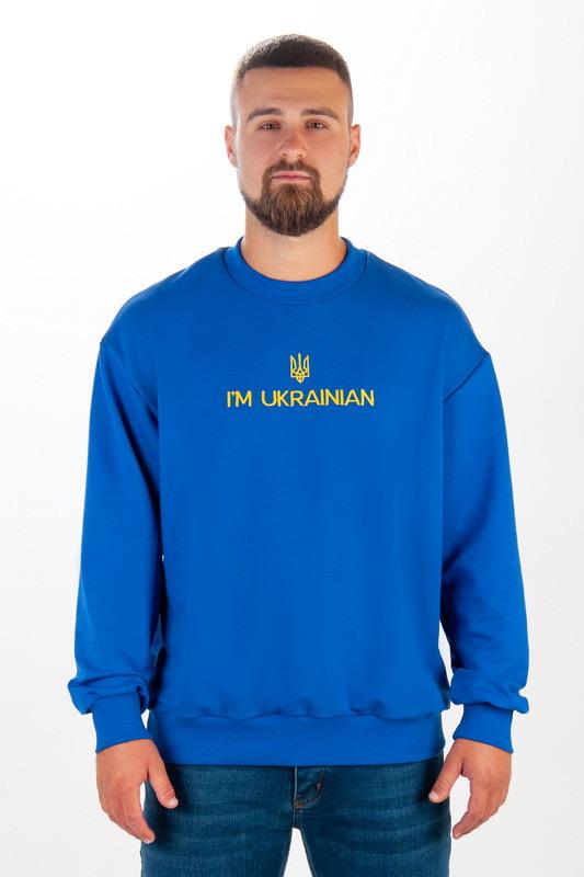 ‼️доставки через шафу немає‼️ Світшот чоловічий в стилі "Family Look", виготовлений з полотна "Футер двонитковий". Модель вільного крою в стилі "Oversize", Світшот спереду прикрашено лаконічною, патріотичною вишивкою. 48 р 385 грн 50 р 405 грн тільки синій 52 р 415 грн тільки синій 54 р 425 грн тільки синій 56 р 435 грн Полотно: футер двонитковий. Склад: 80% бавовна, 17% поліестер, 3% еластан.