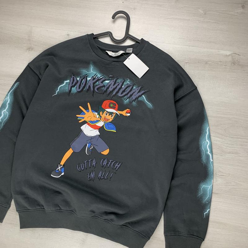 Щільний світшот графітового кольору в стилістиці покемонів. Вільний фасон: relaxed fit. З середини утеплений флісом - параметри: • плечі 60 / шов опущений • п/о грудей 56 • довжина 65 • рукав 54