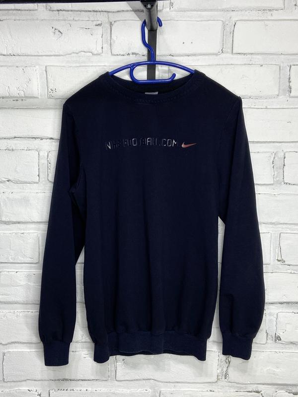 Світшот Nike, стан близький до ідеалу, є один нюанс на 4 фото, трохи по шву відійшла резинка манжету, розмір вказано М, колір темно синій, напис випуклий. Заміри: довжина 68, плечі 40, довжина рукава 63, ПОГ 52