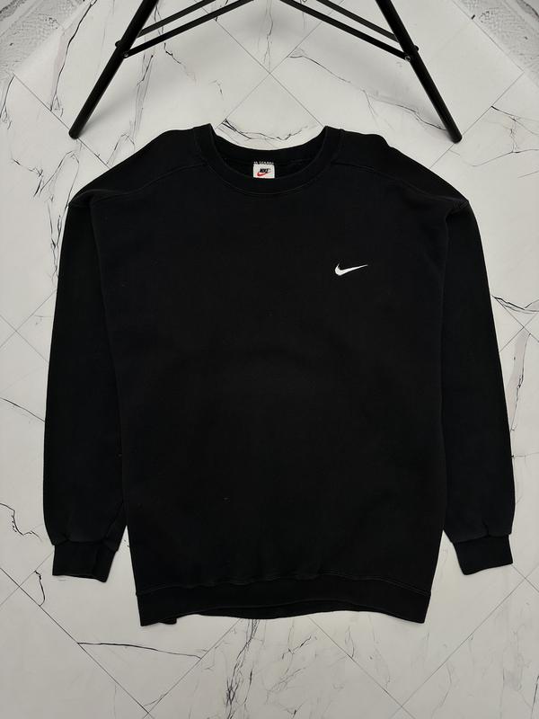 Вінтажний світшот з маленьким свушем Nike. Стан 8/10(злегка рівномірно втрачений колір) Розмір Хл(підійде на ХХЛ) Заміри Груди 67 Плечі 65 Рукав від плеча 61 Довжина 75