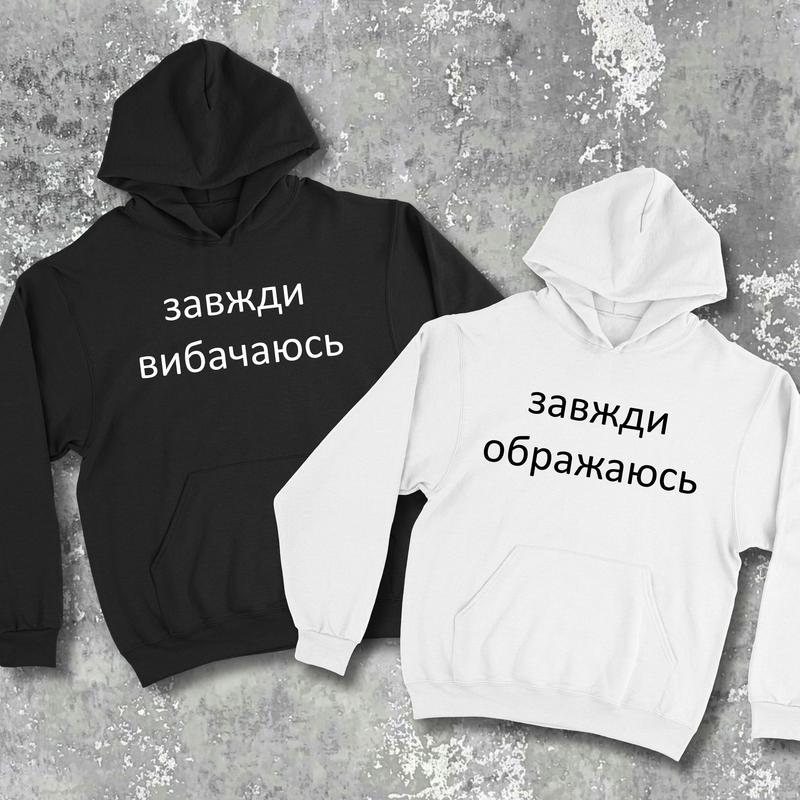 Парні худі/світшоти з принтом - завжди вибачаюсь/завжди ображаюсь!