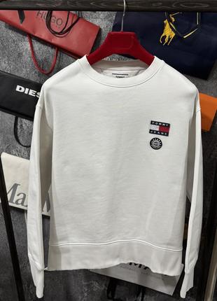 Світшот чоловічий та жіночий Томмі Джинс. Від легендарного американського бренду. Зі свіжих колекцій. На тілі виглядає гарно. Білосніжного кольору. Вишитий логотип з переду на груді. Щільна тканина, трохи тягнеться. Манжети на рукавах та внизу кофти. Якісна та стильна річ. Розмір: чоловічий S Жіночий S, можна на M. Стан 10/10, ідеальний. Торг присутній при повній оплаті. Дивіться мої інші оголошення. Підписуйтесь речей більше на ******** каналі ******************************
