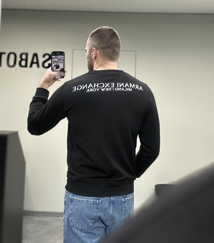 Новий брендовий чоловічий джемпер реглан світшот кофта светр толстовка батнік Armani Exchange В чорному кольорі Кількість обмежена На спині великий фірмовий напис. Має гарне лекало та якість,приємний до тіла. Склад: 100% коттон Розміри в наявності: S,M,LXL,XXL Всі фото реальні, зроблені особисто мною. Можлива примірка в магазині,що знаходиться в м.Рівне за адресою Степана Бандери 60 Також в наявності багато речей: футболки,спортивні костюми,жилетки,сумки,кросівки,куртки,джинси та інше…