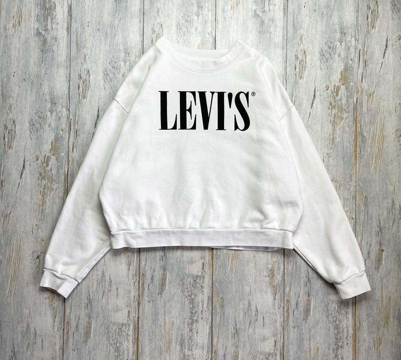 🔸Шикарний світшот від Levi’s 😍 🔸Розмір S 🔸Стан відмінний, але є маленька плямка на рукаві (див.фото) 83% бавовна, 17% поліестр . Заміри: по грудей - 60 см довжина - 52 см рукав від горловини - 71 см