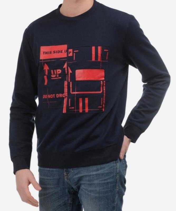 чоловіча кофта, світшот. нм. розмір L. темно синій колір. без начосу. ширина під пахвами 59. плечі 49. довжина 72. рукав від плеча 66. внутрішній шов рукава 50.