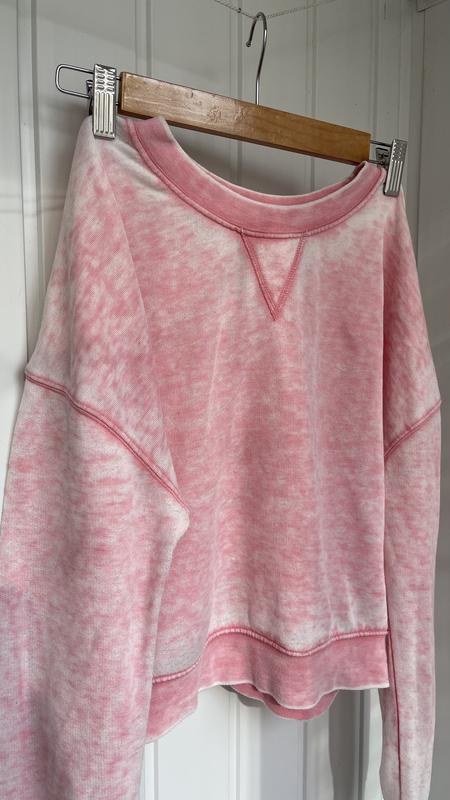 Жіночий світшот у ніжно рожево-білому кольорі від TopShop 34-го розміру. Стильна та незамінна річ у гардеробі жінки. Напівобхват грудей - 60 см. Довжина виробу - 45 см. Довжина рукава - 52 см.