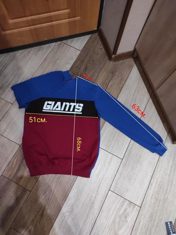 Світшот виконаний у трьох кольорах : синій (рукава та верхня частина); бордовий (центральна частина); чорний (горизонтальна смуга).