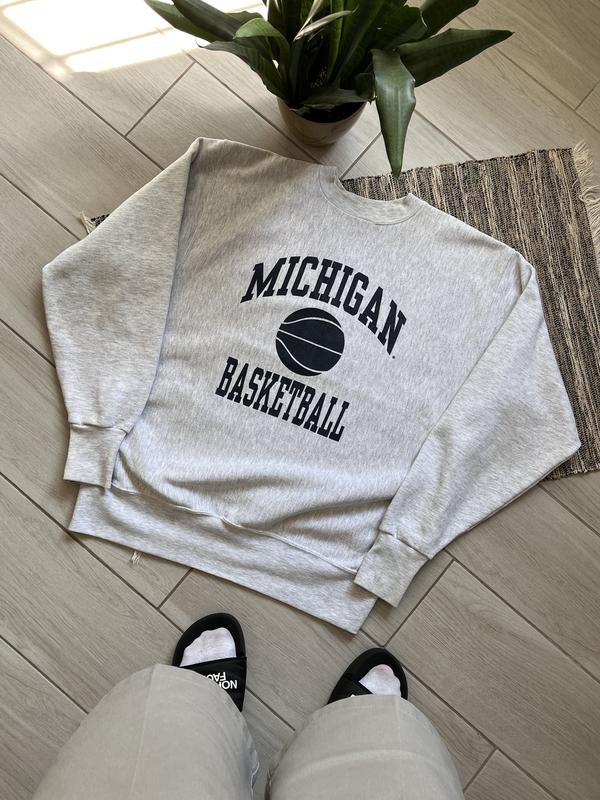 Вінтажний сірий світшот michigan basketball ruged sweats дуже плотний оверсайз зроблений в...