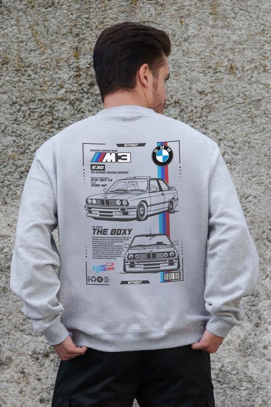 Чоловічий утеплений оверсайз світшот на флісі з принтом without bmw gray