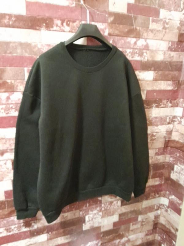 світшот однотоний без принтов чорного кольору.спущений рукав.Замери по груди 61. длина изделия 70. длина рукава от горловини 77. длина плечевого шва 22см. полиестр.