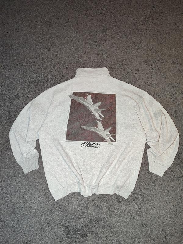 Пропоную рідкісний вінтажний світшот Quarter-Zip від Fruit of the Loom (Screen Stars), присвячений Швейцарській команді F/A-18 Hornet. Світшот має якісні принти спереду та на спині із зображеннями винищувачів F/A-18. Ідеальний для колекціонерів авіаційної тематики та поціновувачів вінтажу 90-х/2000-х. Бренд: Fruit of the Loom (Screen Stars) Розмір: XXL Стан: Дуже гарний вінтажний стан. Блискавка: YKK 📏 Фактичні Заміри (орієнтуйтесь на них): Груди (напівобхват): 66 см Довжина по спині: 81 см Рукав (від плеча): 62 см Плечі (від шва до шва): 63.5 см Гарних покупок.Мирного неба.....
