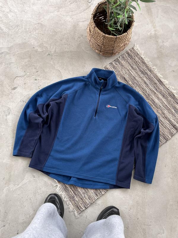 Вінтажна легка синя флісова кофта berghaus з маленьким логотипом в стилі аутдор 1/3 замок