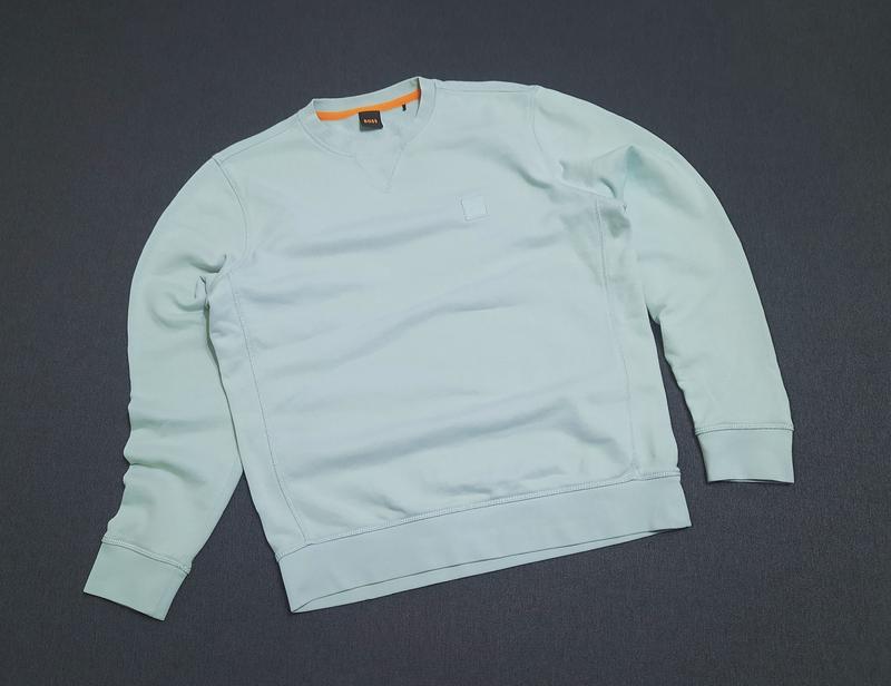 Оригінальний світшот ніжно-бірюзового кольору від бренду Boss,з новіших колекцій,зручний в носінні,гарно буде виглядати на тілі і можна носити як під джинси так і під спортивні штани,приємний на дотик і досить еластичний,манжети не розтягнуті і добре виконують свою функцію,світшот виглядає дуже гарно і стильно особливо завдяки гарному кольору Ширина між підмишками - 57 см Довжина - 68 см Плечі - 44 см Рукав від плеча - 64 см