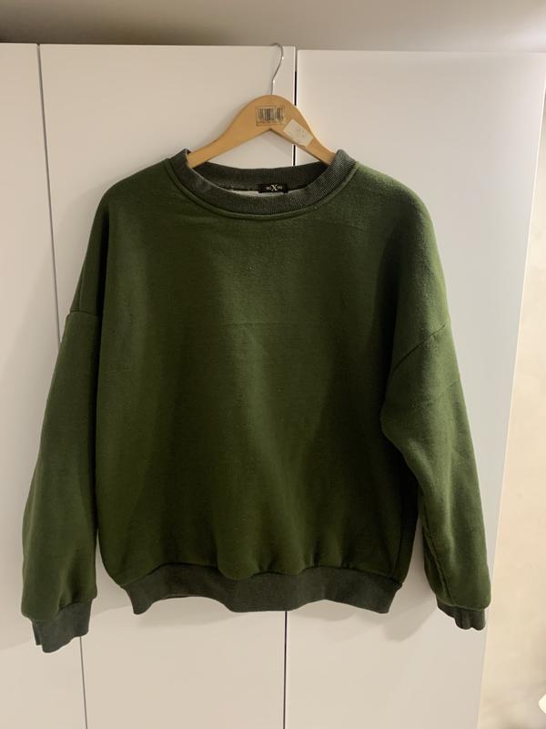 Світшот теплий може бути чоловічий або жіночий колір хакі зсірими манжетами та нижнім краєм ,на бірці непише розмір пів обхват грудей 64 см ( 3 XL-4XL) CNNдовжина 60 см рукав 48 см стан хороший рідко використовувався