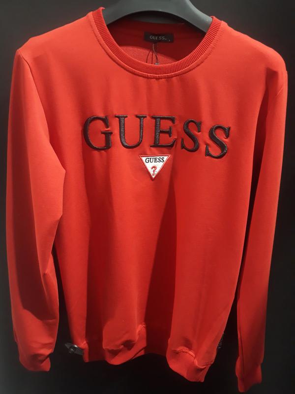 Стильный свитшот Guess в насыщеном красном цвете, хорошо сидит и смотрится