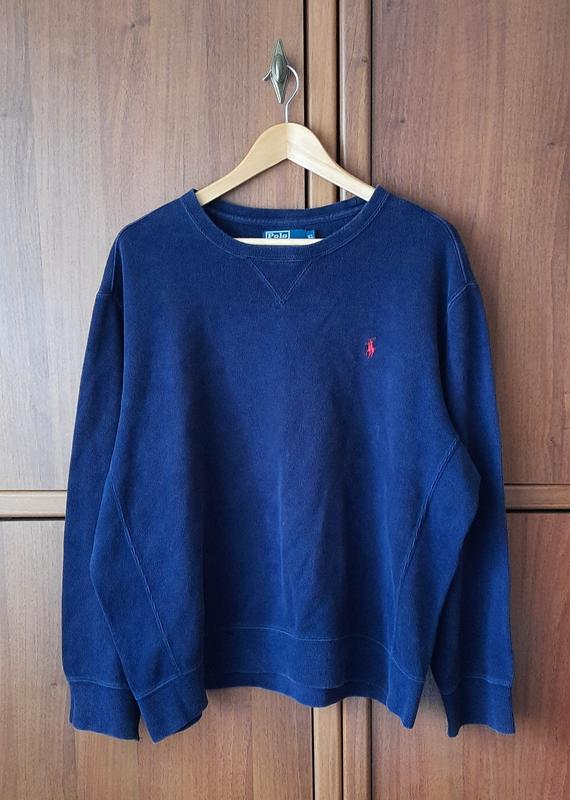 Вінтажний синій чоловічий світшот Polo by Ralph Lauren. Розмір XL. Made in China 100% бавовна. Ширина в зоні плечей - 54.5 см, ширина в зоні грудей - 70 см, довжина рукава - 60 см, довжина спереду - 67 см, довжина ззаду - 69 див.