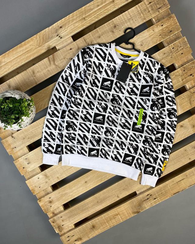 Яскравий світшот в чорно білому забарвленні . Матеріал виробу в міру щільний.. Всередині на микрофлисе. Має базовий крій і фасон. Комфортний і універсальний варіант на повседневнку. Стан: нова річ Розміри в наявності: M,L По бірці М Плечі 48 Пахви 54 Рукав від плеча 69 Рукав від пахви 58 Довжина 73 По бірці L Плечі 48 Пахви 57 Рукав від плеча Рукав від пахви Довжина 73