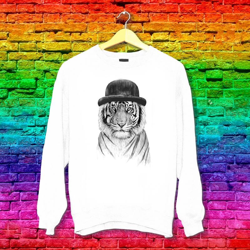 Світшот з принтом Сірий Тигр в капелюсі Push IT