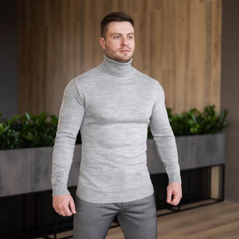 Светр під горло Pobedov "Axelrod" (Фсв00003) сірий ▫️Відмінний чоловічий светр-гольф. ▫️ Матеріал: турецька пряжа 70% шерсть, 30% акрил ▫️Приталена модель. ▫️Має подвійну горловину, фасон - з відворотом, під горло. ▫️Дуже зручний, приємний до тіла. ▫️Зносостійкий і практичний - не кошлатиться при перших носіннях. ▫️Витриманий стиль, класичний крій і лаконічний дизайн светра не залишать ваш образ непоміченим, а приємний до тіла склад пряжі зігріє прохолодними вечорами. ▫️Розміри: S M L XL ХХL