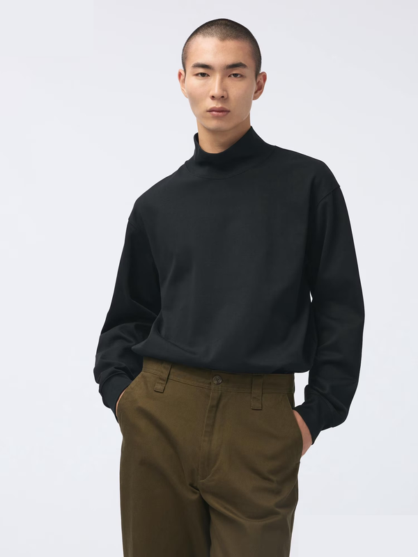 Состав: 56% хлопок, 44% полиэстер Brushed Lined Mock Neck T-Shirt | Long Sleeve мягкая и удобная ткань с высокой горловиной манжеты в рубчик позволяют легко закатать рукава со спущенными плечами на модели размер М, рост 185см
