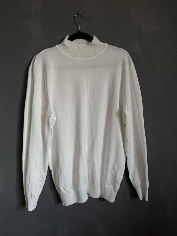Гарний чоловічий гольф Білого кольору Як для святкового так і для повсякденного образу ПОГ 58 Довжина по спинці 70 Ширина плечі 51 Рукав довжина 63 Низ резинка 40 Тягнеться добре бо трикотаж