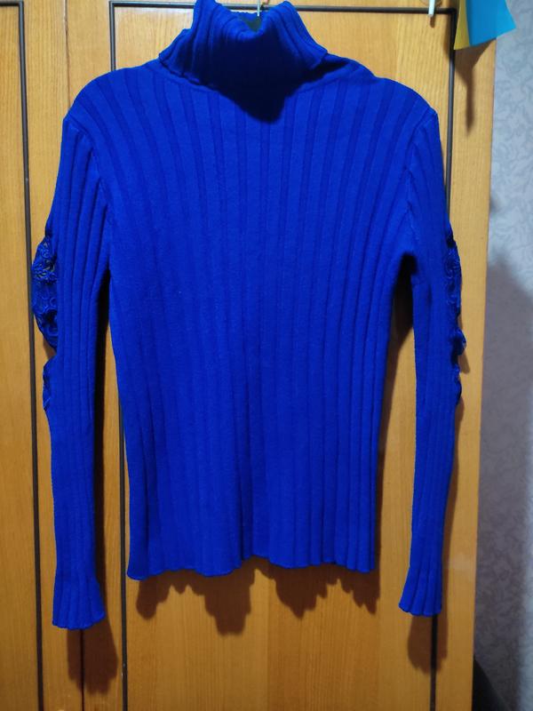Гольф в яскравому кольорі електрик.Під горло,на рукавах красивий орнамент.