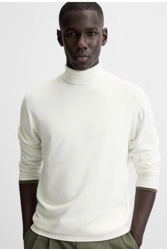 Стильний базовий гольф молочного (айворі) кольору від Zara. Класичний фасон із м’яким коміром-стійкою та довгими рукавами. Лаконічний дизайн без принтів і логотипів — ідеальна база для гардеробу. ✨ Актуальний мінімалістичний крій ✨ Приємний до тіла, м’який матеріал ✨ Гарно поєднується з джинсами, брюками та під жакет ✨ Розмір М — добре сідає по фігурі Стан: дуже хороший. Без дефектів. Заміри: ПОГ-52, довжина-62, довжина рукава від шиї-75. Матеріал : 83% віскоза і 17% нейлон. Швидко відправлю будь-якою поштою.